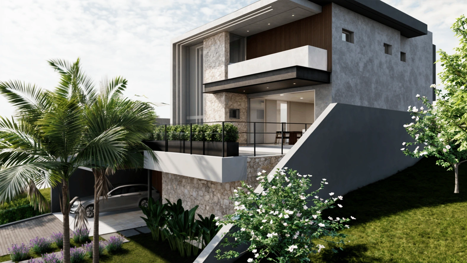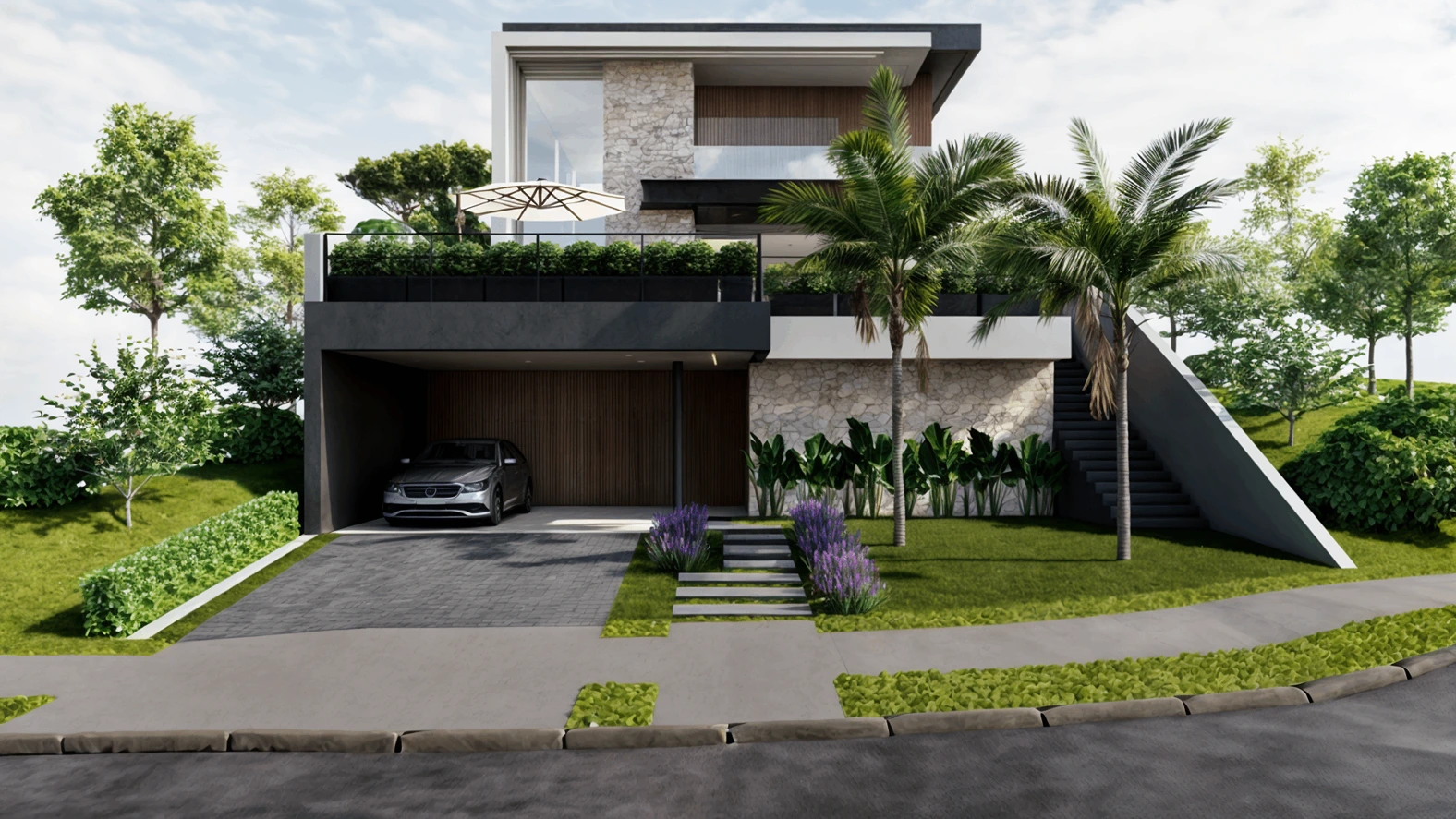 Descobrir o charme de pensar em uma casa em aclive, onde cada detalhe é bem pensado e a vista é simplesmente deslumbrante! Aqui, as manhãs começam com o sol se levantando pela lateral direita do terreno e se pondo na fachada frontal da residência, dando o aconchego dos finais de tarde.