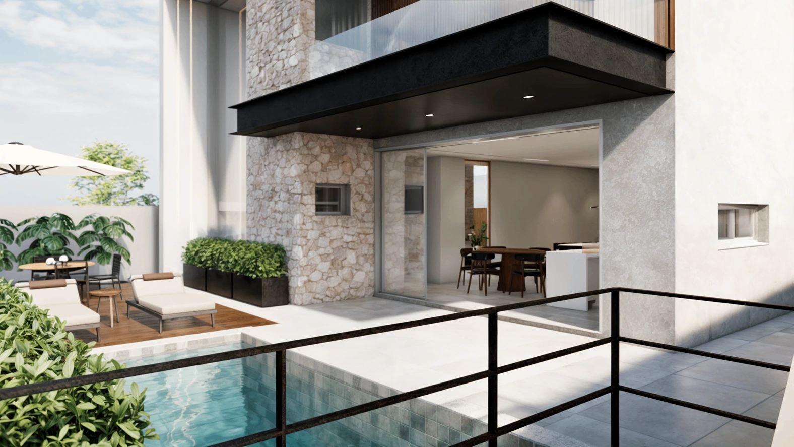 O aclive proporciona não só uma perspectiva única, mas também uma conexão especial com o ambiente ao redor. Cada espaço foi pensado para trazer conforto e aconchego, além da conexão entre área social com a área de lazer.